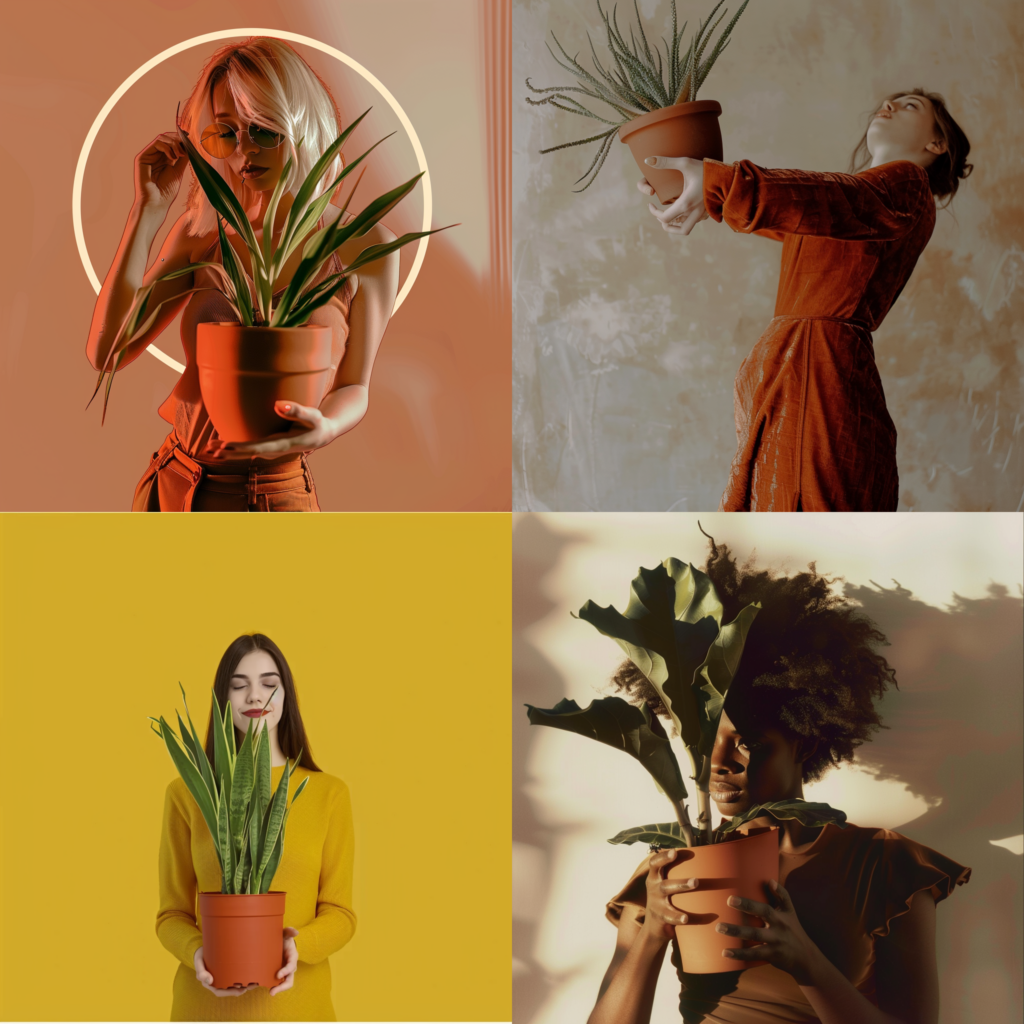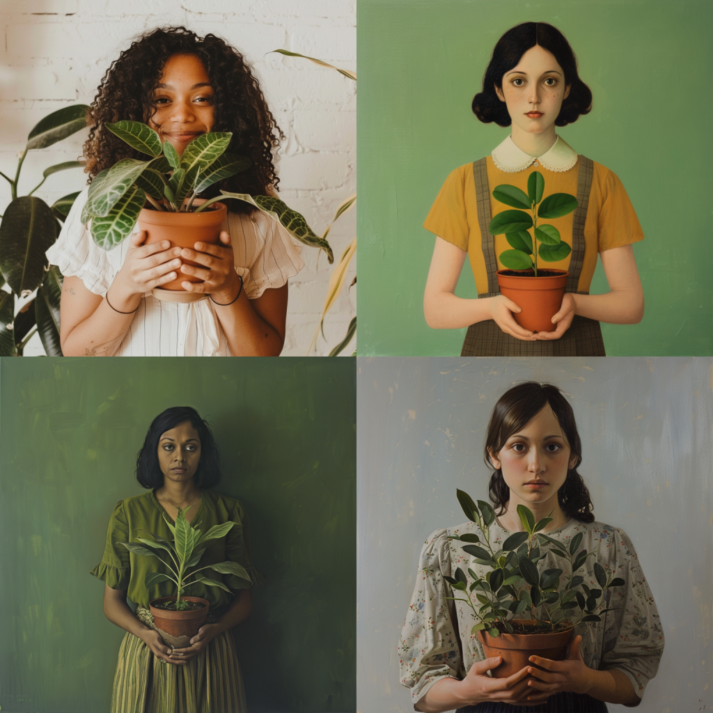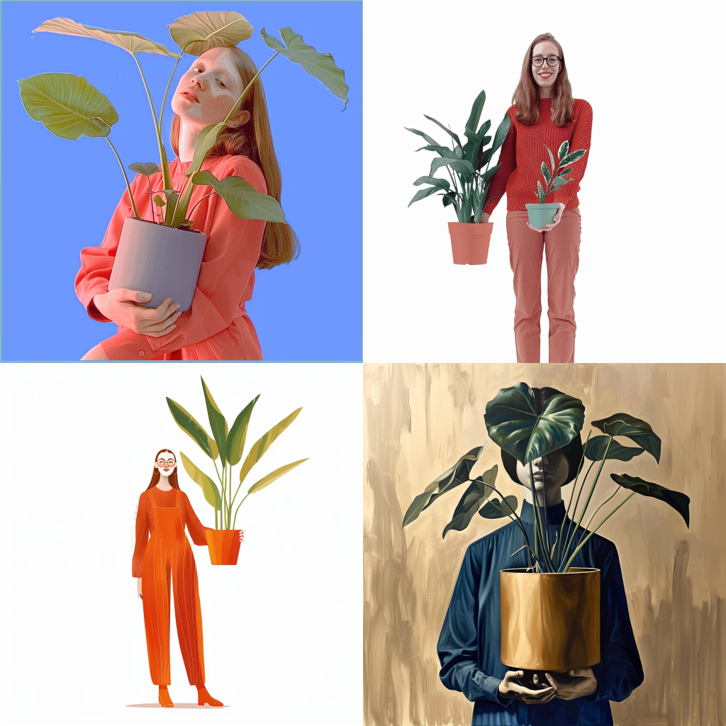 a woman holding a potted plant –weird 1500