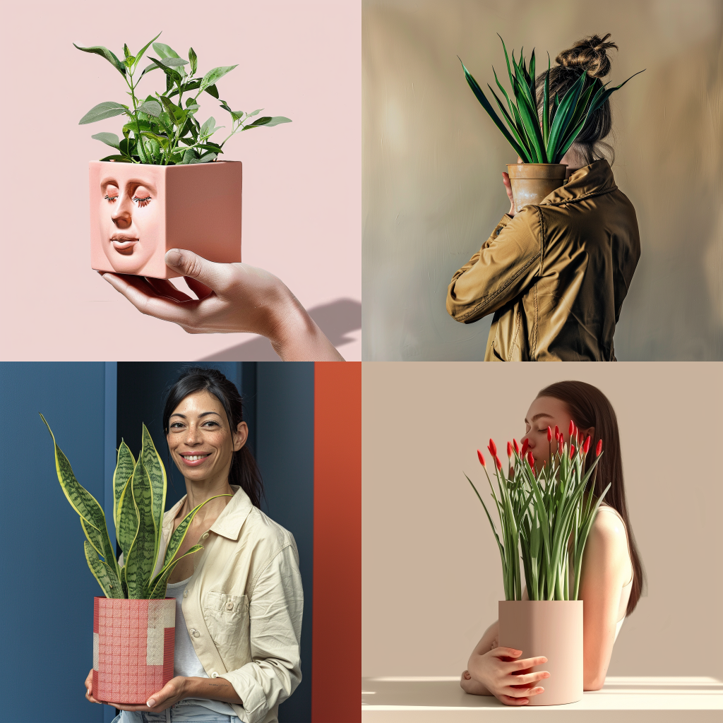 a woman holding a potted plant –weird 500