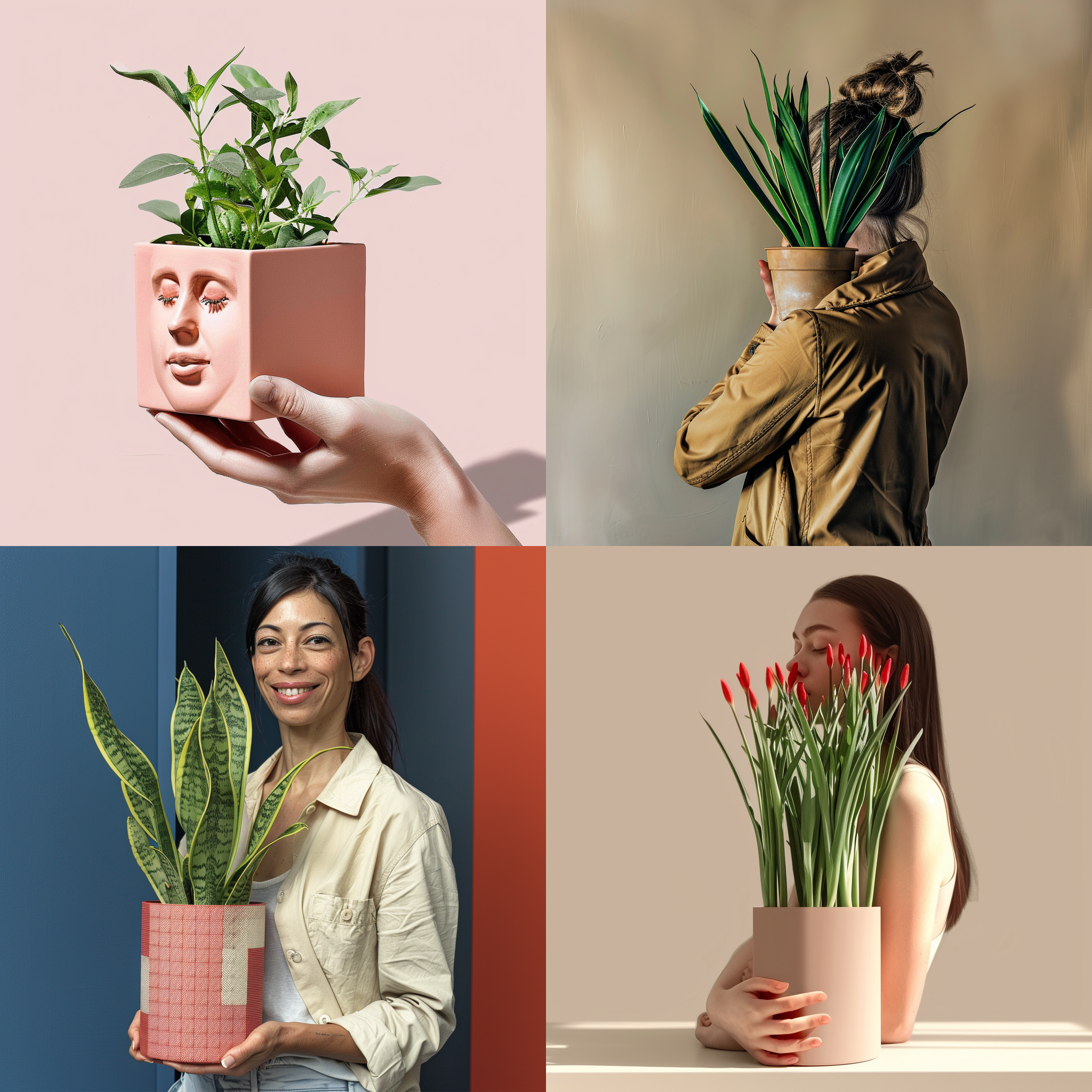a woman holding a potted plant –weird 500